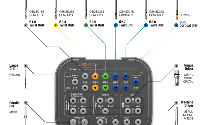 İmplant sistemlerimizin her biri için ve her operasyon için, Cerrahi KIT’lerimiz ile tamamen donatılmıştır.